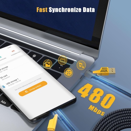 • 【نقل بيانات عالي السرعة】استمتع بنقل البيانات بسرعة فائقة تصل إلى 480 ميجابت في الثانية، يتيح لك سلك البيانات العالمي نقل ومزامنة الملفات والمستندات والأفلام والموسيقى والصور المفضلة لديك بسرعة وكفاءة استثنائية. سيتم نقل 1 غرام من الملفات في غضون 30 ثانية. قل وداعًا لعمليات النقل البطيئة. (لا يدعم إخراج الفيديو /͎الوسائط).