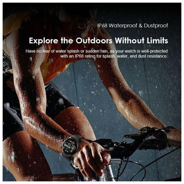 • مقاومة الماء IP68 : لا تخشى من رش الماء أو المطر المفاجئ، حيث أن ساعتك محمية بشكل جيد بتصنيف IP68 لمقاومة الرش والماء والغبار.